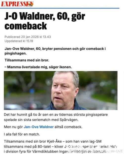 GOAT再出山的背后 一场关于热爱亲情与时代记忆的回合 当“乒坛皇帝”这个称号再次与瓦尔德内尔联系在一起时,很多人的第一反应是惊讶——60岁了,他竟然要复出。而真正打动无数球迷的,并不是“复出”
